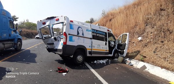 Ambulancia hace carambola en la autopista siglo XXI, los paramédicos quedan lesionados