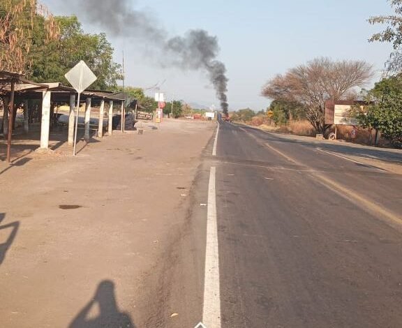 También reportan bloqueos y quemas sobre la carretera Apatzingán -Buenavista a la altura del crucero a La Ruana.