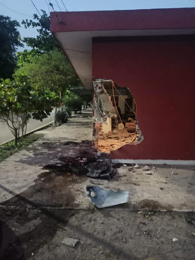 Por la zona circulaba una camioneta Nissan Frontier color gris sin placas y al parecer debido a que el chofer conducia en estado de ebriedad y en exceso de velocidad, al llegar a la esquina de la calle Hermanos Flores Magon, perdio el control del volante y termino impactandose contrabla casa marcada con el numero 1077.