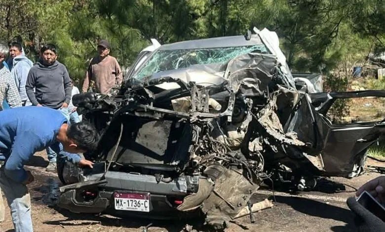 Uruapan, Michoacán, 10 de febrero de 2026. Un accidente de tránsito en la carretera Uruapan-Los Reyes, entre Angahuan y Corupo, dejó a un joven con lesiones graves tras el impacto de una camioneta GMC Sierra contra un camión de carga que terminó volcado. La fuerza del choque destrozó prácticamente la camioneta, dejando al ocupante atrapado entre los fierros retorcidos.