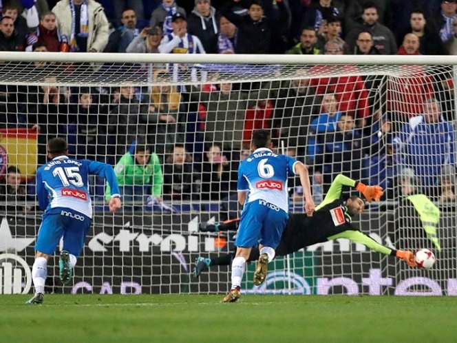 El portero del Espanyol, Diego López, que le paró un penal a Leo Messi en el derbi copero de ayer…