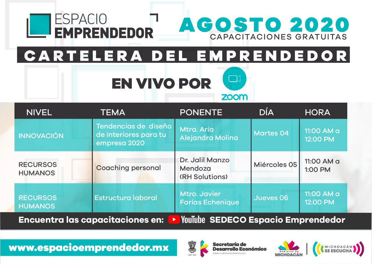 Los cursos y talleres que ofrece Sedeco son gratuitos y virtuales Morelia, Michoacán, a 1° de agosto de 2020.- Temas…