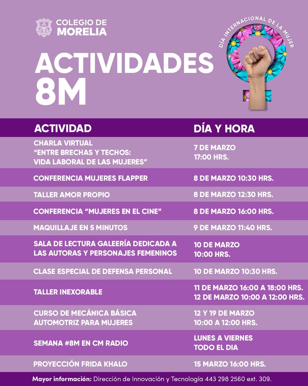 El Colegio de Morelia presenta cartelera de actividades para Conmemorar el 8M