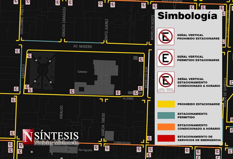 Mapa de estacionamiento permitido y prohibido en el centro histórico de Morelia evite infracciones.