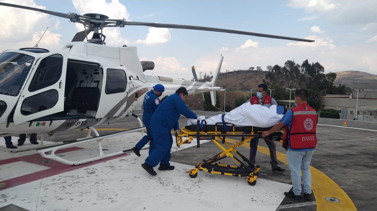 Traslado aéreo a heridos tras accidente en carretera Acutzio-Villa Madero