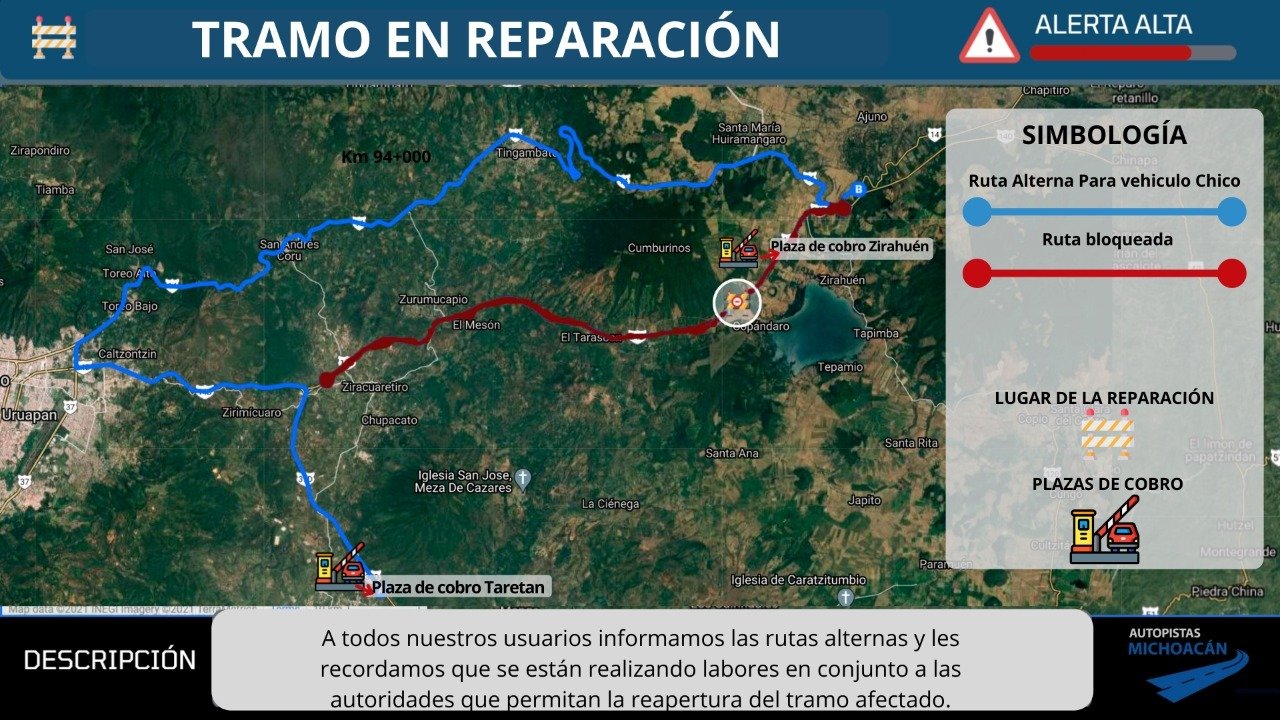 Al momento continúa cerrada la circulación en el tramo Pátzcuaro – Uruapan y se generan desvíos en los siguientes puntos:…
