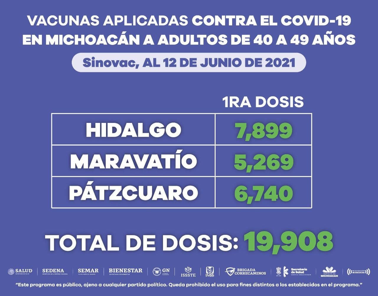 Se han aplicado hasta la fecha más de 48 mil dosis Morelia, Michoacán, a 12 de junio de 2021.-…