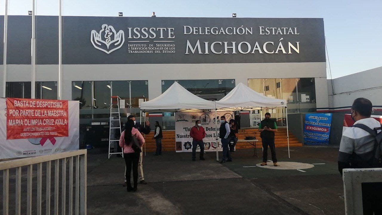 Manifestación de los trabajadores del ISSSTE Michoacán, piden destitución de Olimpia Cruz