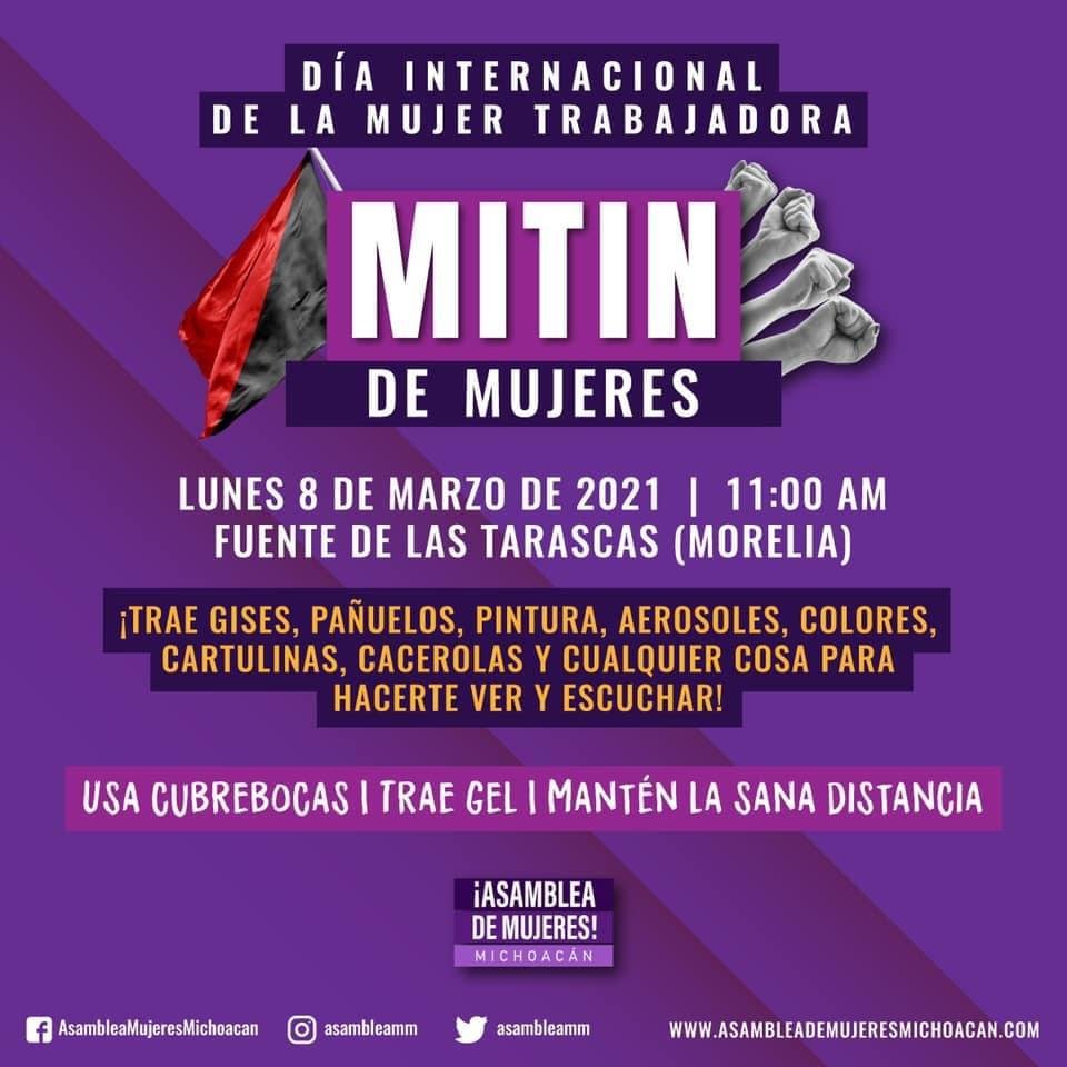Se esperan este lunes 8 de marzo, manifestaciones de mujeres y plantón indefinido de la CNTE «Poder de Base» en Morelia