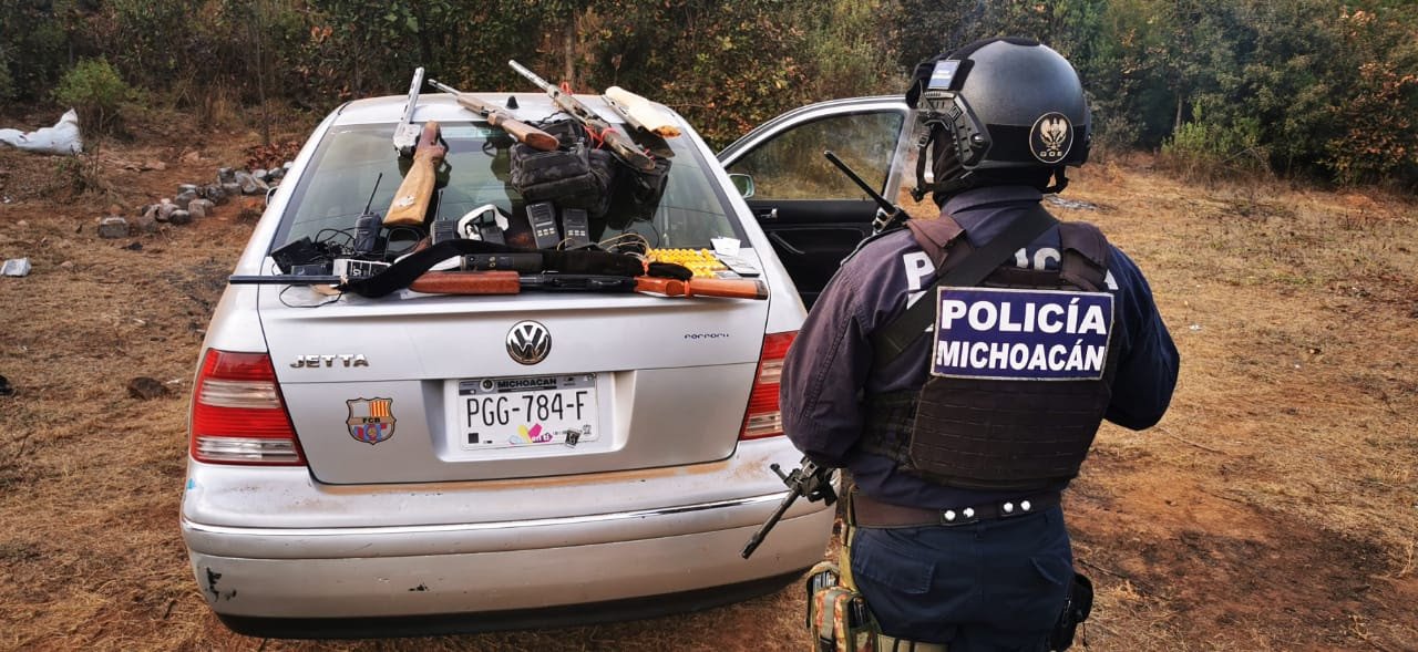 Destruyen en Pátzcuaro un campamento y se aseguraron 4 escopetas, 31 cartuchos, así como un vehículo