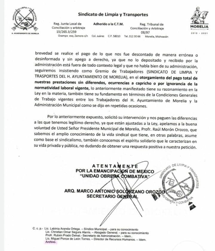 Denuncian sindicalizados, que incumple el gobierno de Raúl Morón con pago de aguinaldo y prestaciones a trabajadores