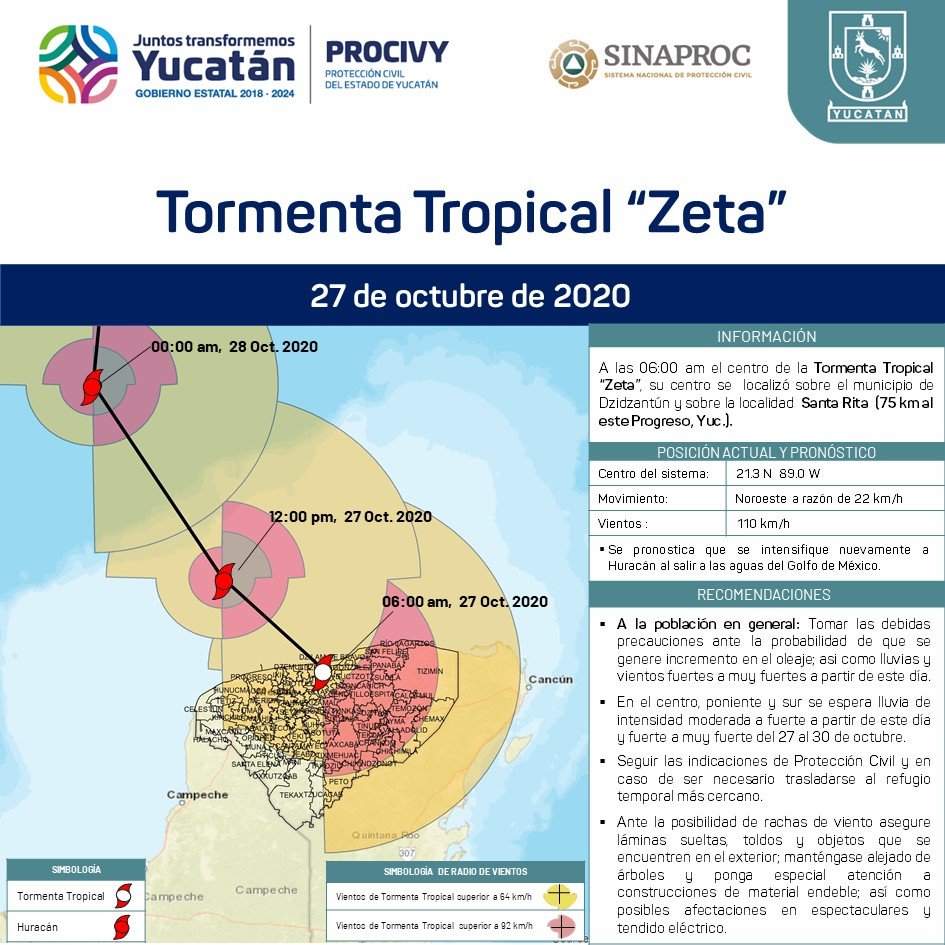 Fecha: Martes, 27 de octubre de 2020 Hora: 06:50 hrs. Situación actual: La Tormenta Tropical Zeta; su centro se localiza…