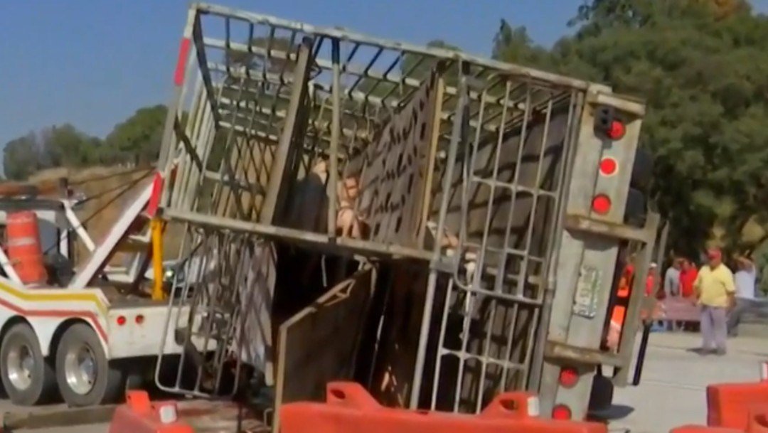 Un camión con unos 200 cerdos volcó este lunes en la autopista México-Puebla y al menos 20 de estos animales…