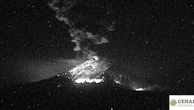 Popocatépetl emitió ceniza y material incandescente durante la madrugada