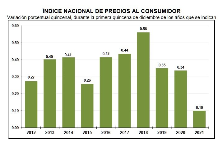 El Índice Nacional de Precios al Consumidor (INPC) presentó un alza de 0.10 por ciento respecto a la quincena inmediata anterior.