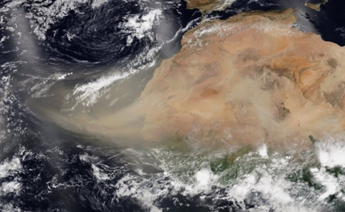 Tormenta de arena en el norte de México y polvo del Sahara en el sureste