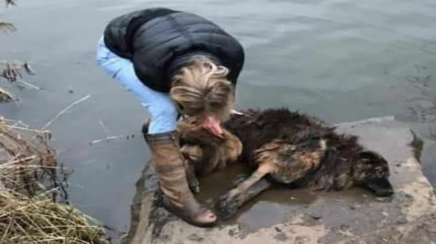Rescatan a perrita que fue arrojada a un río con una piedra amarrada al cuerpo
