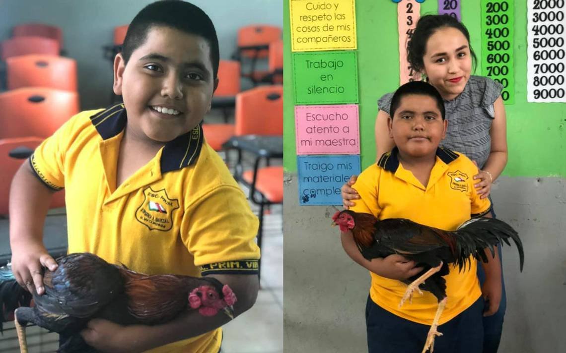 No tenia dinero para el regalo de su maestra y le llevo un gallo