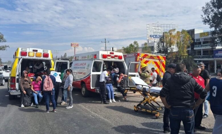 Choque de un camión urbano en Tarímbaro deja 5 lesionados