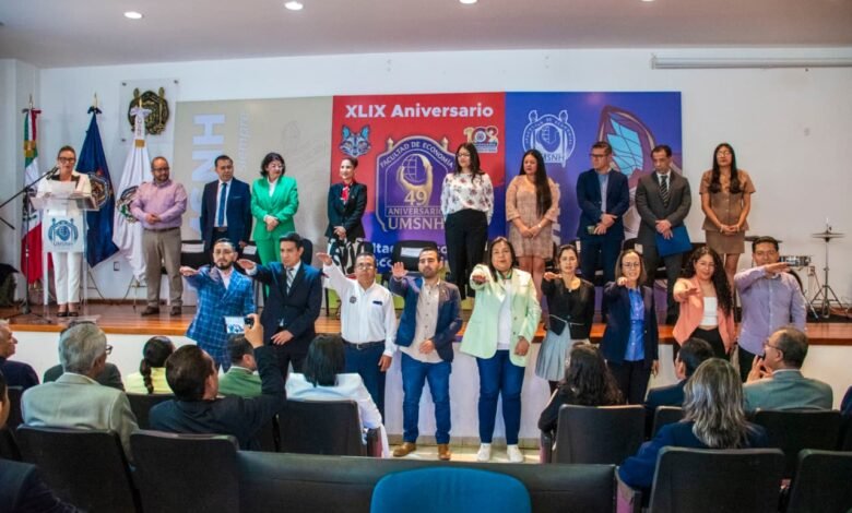 Morelia, Michoacán, a 23 de octubre.- Con una transformación interna, la Facultad de Economía “Vasco de Quiroga” (FEVQ) celebró su 49 aniversario, el cual estuvo encabezado por la rectora de la Universidad Michoacana de San Nicolás de Hidalgo (UMSNH), Yarabí Ávila González, quien reconoció a la dependencia por las reformas realizadas en beneficio de la comunidad estudiantil.