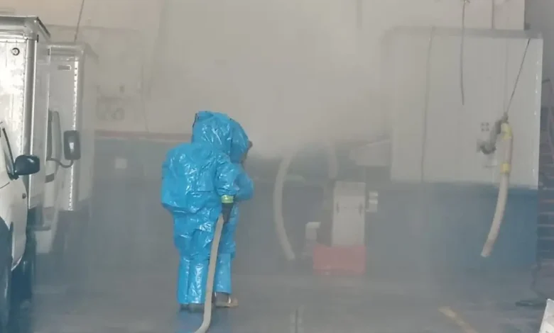 Los bomberos, equipados con material especializado, cerraron válvulas adicionales para contener la fuga.