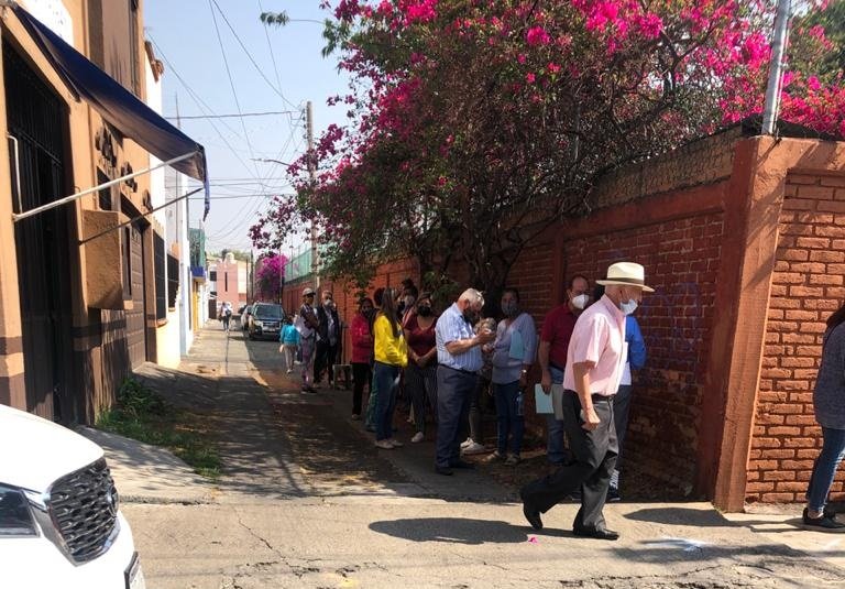 Morelia, Michoacán a 20 de marzo de 2021.- Luego de que el Ayuntamiento de Morelia convocara a sus empleados, adultos mayores, de todas las oficinas a acudir para recibir la vacuna este sábado que inició la jornada de vacunación contra el Covid-19, cuando estos se presentaron, fueron prácticamente corridos al decirles que no había vacunas para ellos.