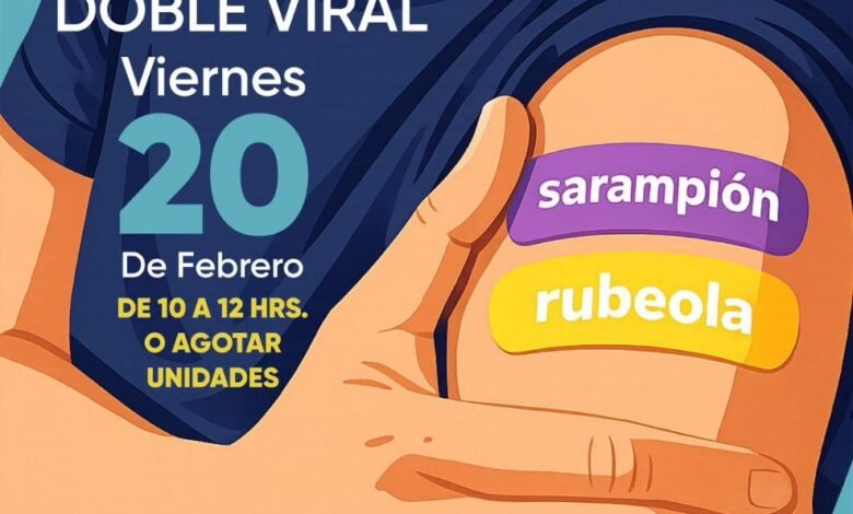 Morelia, Michoacán, a 18 de febrero de 2026 – Ante la importancia de mantener altas coberturas de vacunación y prevenir posibles brotes, la presidenta honoraria del DIF Morelia, Paola Delgadillo Hernández, anunció la jornada de aplicación de vacuna doble viral contra sarampión y rubéola, que se realizará este viernes 20 de febrero, de 10:00 a 12:00 horas o hasta agotar unidades en las oficinas centrales del DIF Morelia.
