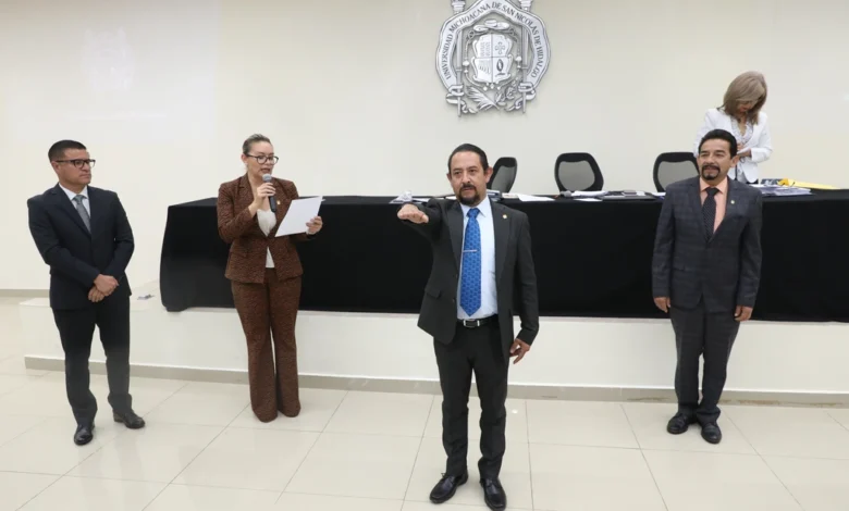 Morelia, 10 de diciembre de 2024.- El Consejo Universitario designó al maestro Manuel López Rodríguez como nuevo director de la Facultad de Medicina Veterinaria y Zootecnia (FMVZ), quien recibió de manos de la rectora de la Universidad Michoacana de San Nicolás de Hidalgo (UMSNH), Yarabí Ávila González, el nombramiento que lo acredita como titular de la dependencia.