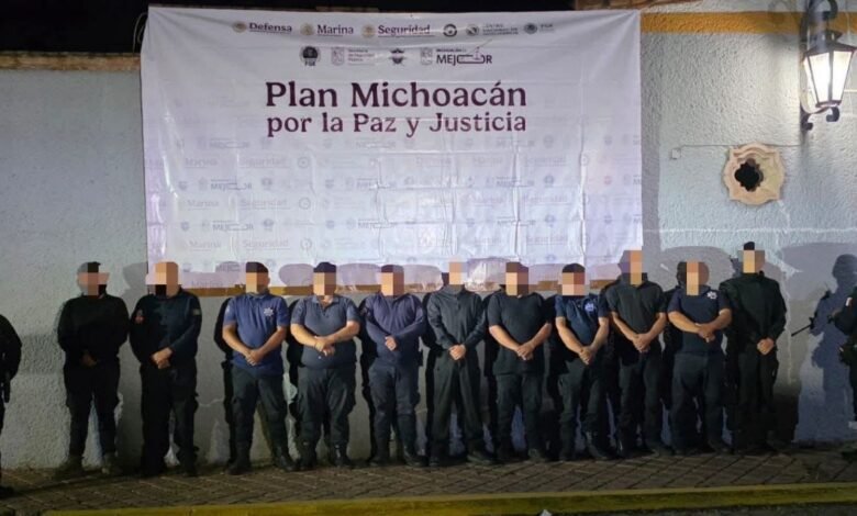 Ecuandureo, Michoacán, 24 de febrero del 2026.- Elementos de la Secretaría de Seguridad Pública (SSP) detuvieron a 11 policías del municipio de Ecuandureo, entre los que se encuentra el director de Seguridad Pública Municipal, por estar presuntamente relacionados con actividades ilícitas y posesión de drogas.