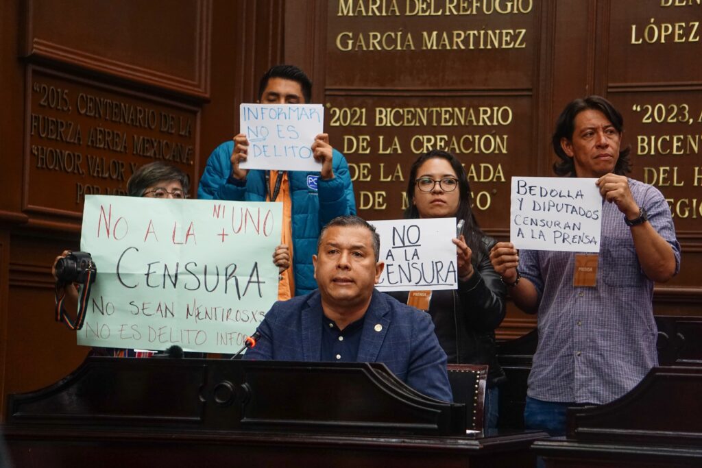 La manifestación de la prensa, que por minutos tomó el estrado del Poder Legislativo, era contra la aprobación del nuevo delito, pero además era por la premura y la opacidad con la que los legisladores actuaron para que el sueño del gobernador se convirtiera en realidad.