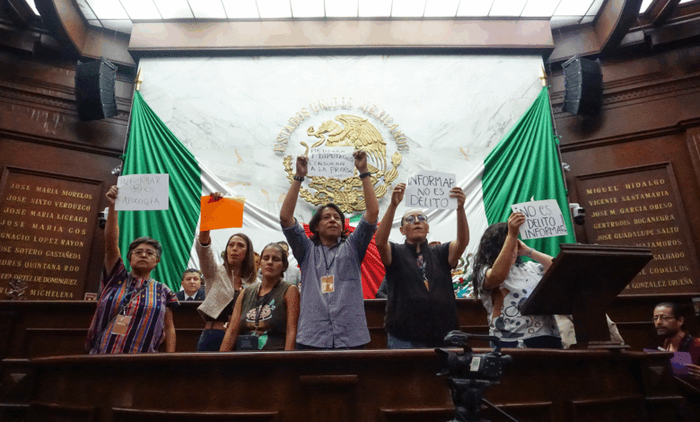 Se trata de un nuevo delito que criminaliza las ideas, las expresiones artísticas, comunicativas y críticas con penas de hasta seis meses de cárcel, como han denunciado activistas de colectivos en defensa de la libertad de expresión en Michoacán.