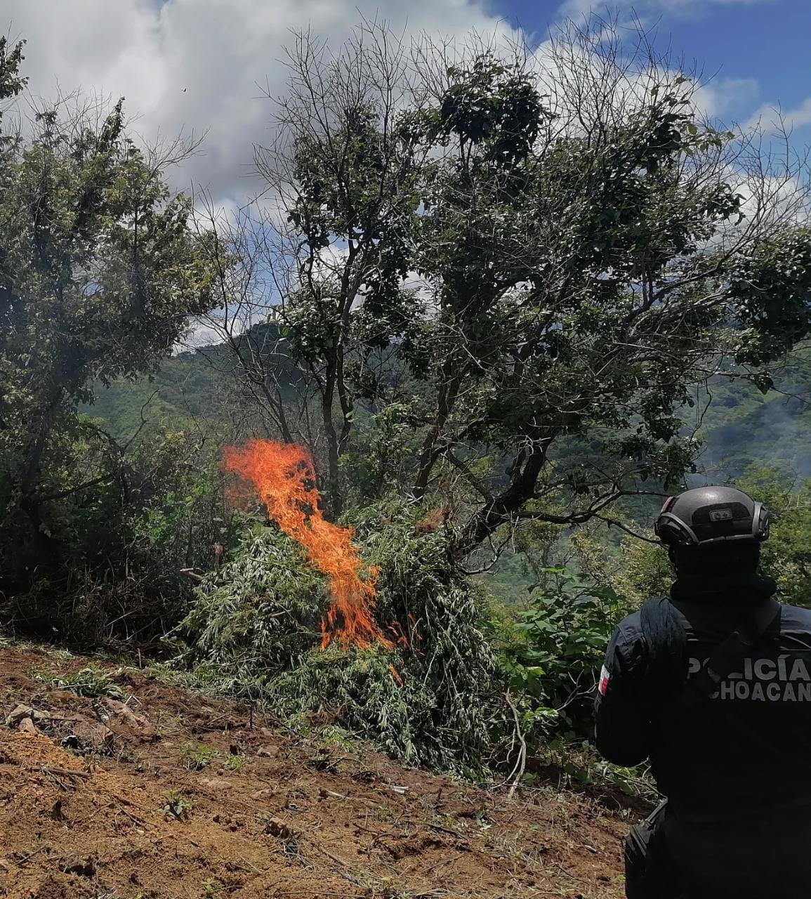 Posteriormente, los uniformados procedieron a efectuar la incineración de las aproximadamente 9 mil 600 plantas que se encontraban en el sitio cuya altura superaba los dos metros.