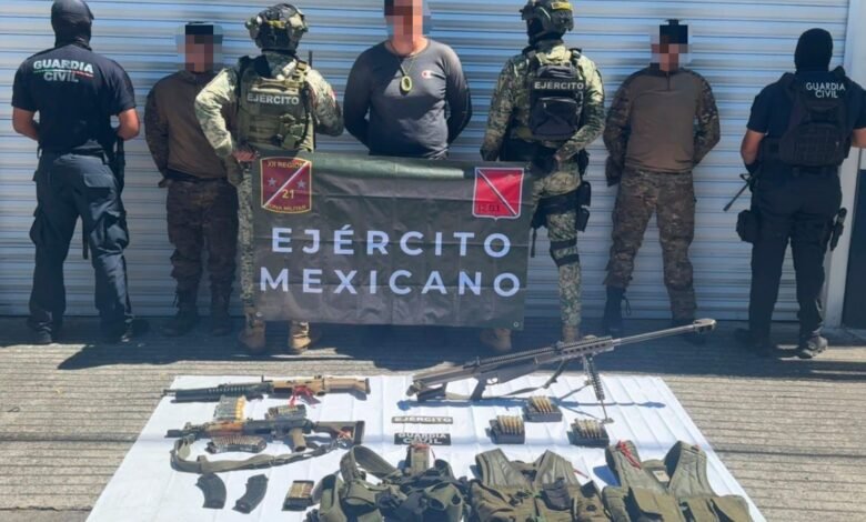 Los ahora indiciados portaban un arma calibre 50, así como dos fusiles de distintos calibres; además de 122 cartuchos útiles, 12 cargadores, cinco granadas de fragmentación y equipo táctico que fue resguardado.