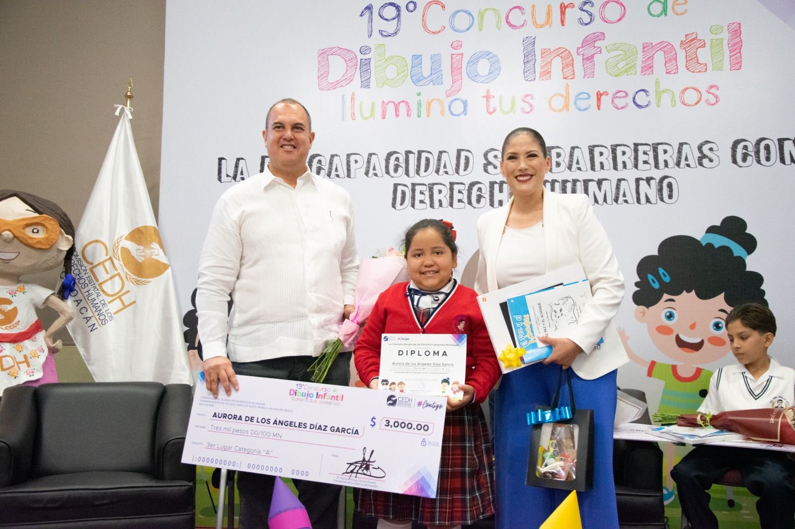 Morelia, Michoacán, a 16 de mayo de 2023.- El presidente de la Comisión Estatal de los Derechos Humanos en Michoacán, entregó los premios a los niños y adolescentes ganadores del 19° Concurso de Dibujo Infantil “Ilumina tus Derechos”, que en esta ocasión tuvo como tema “La discapacidad sin barreras como un derecho humano”.