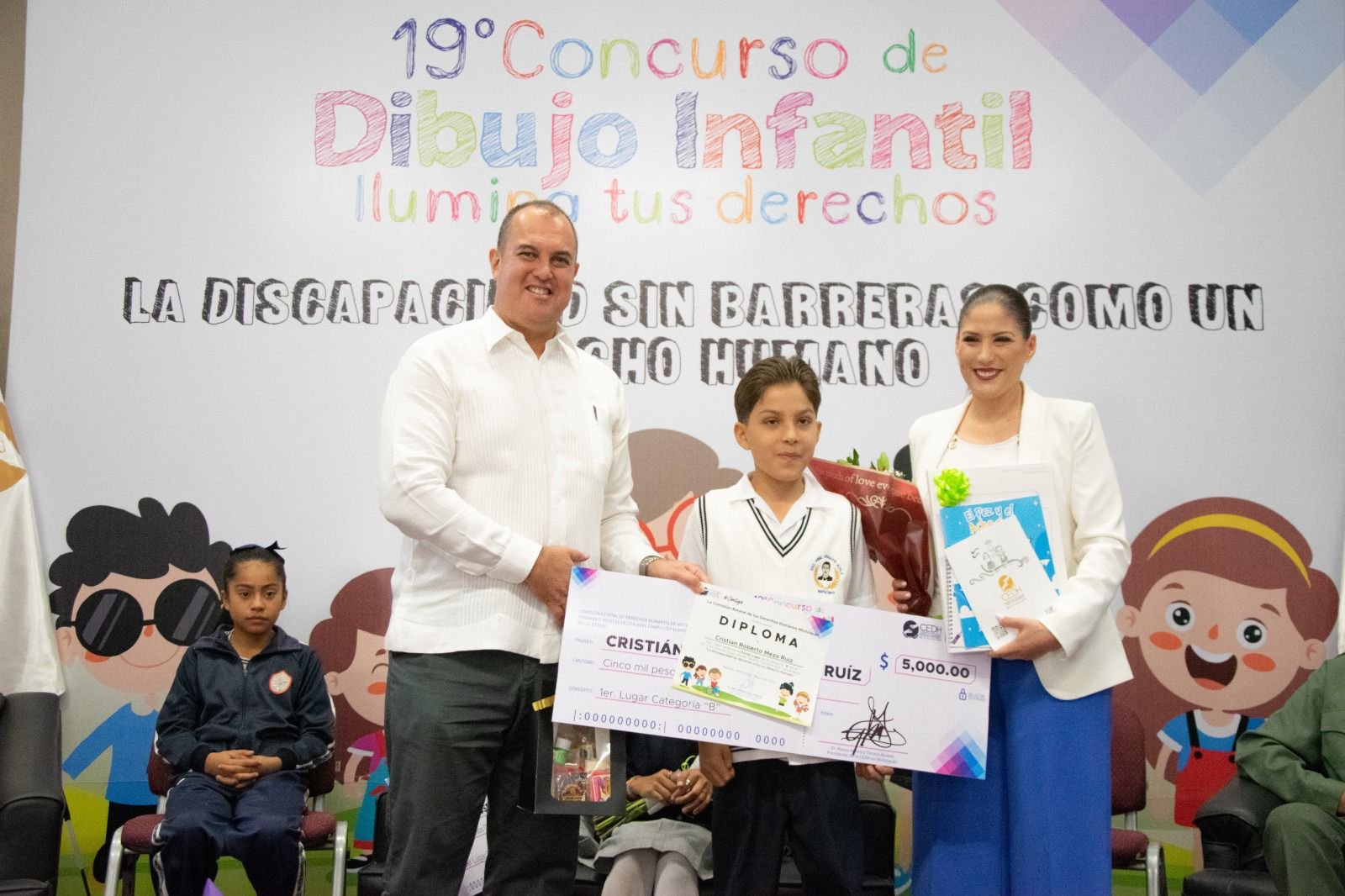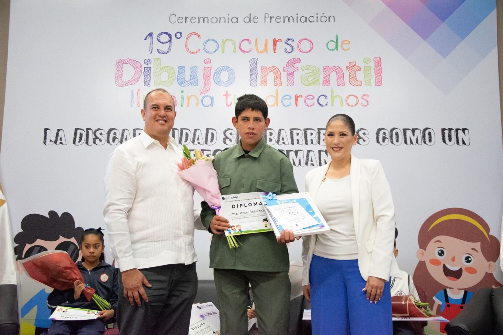 A nombre de los galardonados habló Cristián Rogelio Rojas Arroyo, de 7 años, ganador del primer lugar en la categoría de 6 a 9 años, quien dijo que, a pesar de su discapacidad, puede hacer y practicar lo que más le gusta, que es dibujar.