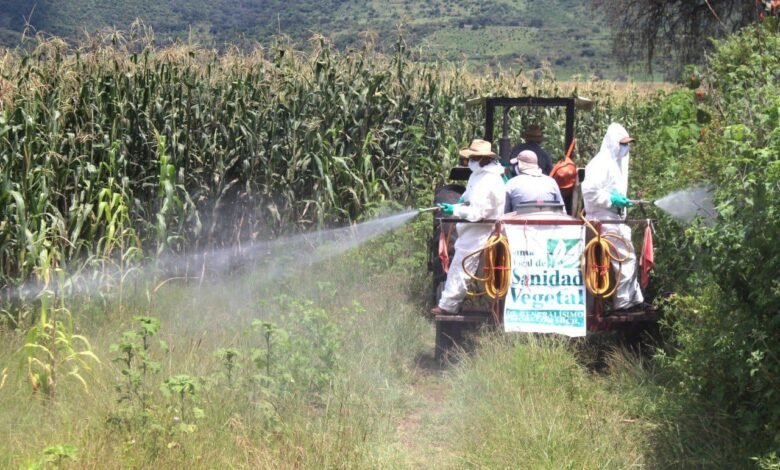 Con el objetivo de proteger los cultivos de maíz para bajar la densidad de la población de la plaga de chapulín, personal especializado aplicó 3 mil litros de disolución de insecticida adquirida a través del Gobierno de Morelia, cubriendo una zona de más de 200 hectáreas de parcelas y beneficiando a más de 50 productores agrícolas.