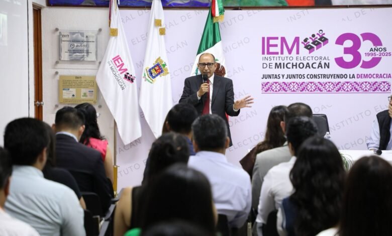 Morelia, Michoacán, 22 de septiembre de 2025. Con el objetivo de reflexionar sobre el impacto de la tecnología en los sistemas electoral y legal, así como analizar sus retos y oportunidades, el Instituto Electoral de Michoacán (IEM) inauguró el ciclo de pláticas “Cómo la tecnología transforma el sistema electoral y legal”, a cargo del Lic. Otilio Esteban Hernández Pérez, especialista en derecho y tecnologías aplicadas.