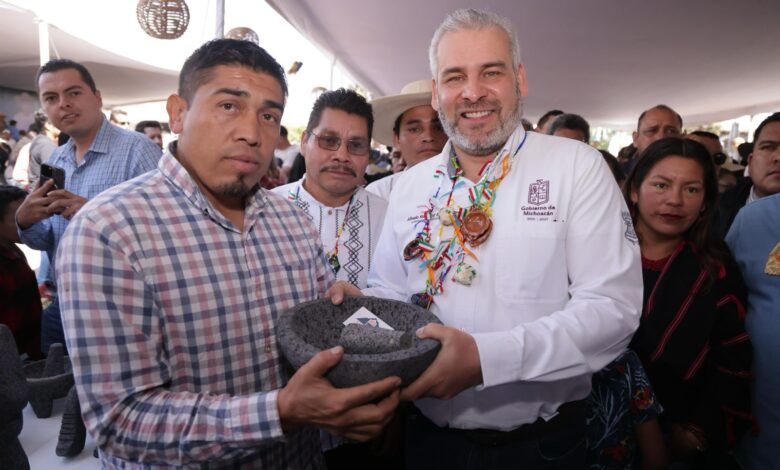 Morelia, Michoacán, 16 de noviembre de 2024.- Año con año iremos consolidando el molcajete de San Nicolas Obispo y buscaremos su denominación de origen, anunció el gobernador del Estado, Alfredo Ramírez Bedolla, al inaugurar la novena Feria del Molcajete en esta tenencia de Morelia.