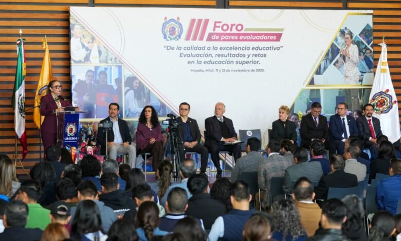 Morelia, Michoacán, a 11 de noviembre de 2025.- La Universidad Michoacana de San Nicolás de Hidalgo (UMSNH) vive una consolidación histórica en su calidad educativa y refrenda el firme compromiso con la evaluación y la mejora continua, lo anterior quedó de manifiesto durante la inauguración del III Foro de Pares Evaluadores “De la calidad a la excelencia educativa”, que estuvo presidido por la rectora Yarabí Ávila González.