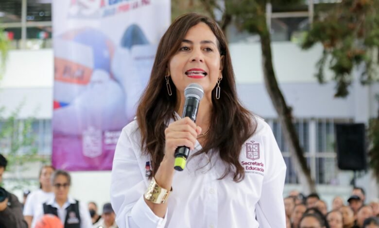 Morelia, Michoacán, 15 de octubre de 2025.- La secretaria de Educación, Gabriela Molina, hace un llamado a la comunidad michoacana para participar en la jornada de acopio de víveres y artículos de primera necesidad, destinada a apoyar a alrededor 100 mil familias damnificadas por las recientes e intensas lluvias en al menos cinco estados del país.