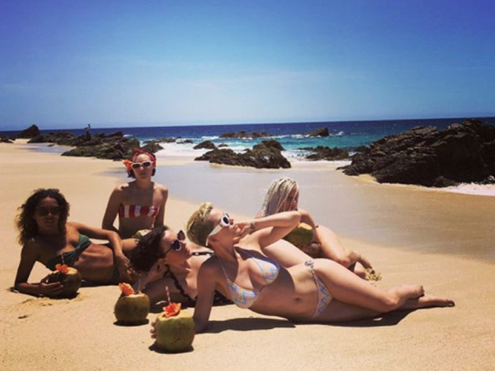 En las imágenes aparece Katy con un pequeño bikini, con un coco en la mano, mientras disfruta del sol, la arena y el mar con otras cuatro amigas, junto al mensaje ‘Diosas de la torpeza’, ya que en una de las imágenes se aprecia como una fuerte ola interrumpe su ‘sexy’ sesión de fotos.