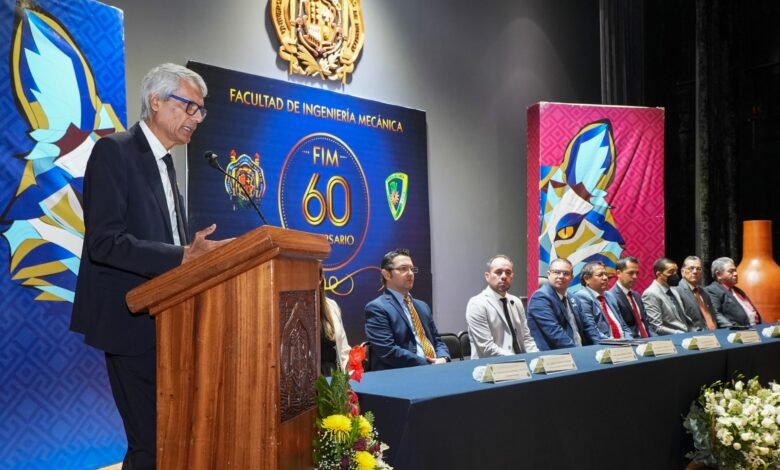 Morelia, Michoacán, a 5 de noviembre de 2025.- En el marco de la conmemoración del 60 aniversario de la Facultad de Ingeniería Mecánica de la Universidad Michoacana de San Nicolás de Hidalgo (UMSNH), el secretario Académico, Antonio Ramos Paz, en representación de la rectora Yarabí Ávila González, indicó que este día también se celebra un logro que da cuenta de la calidad y el compromiso académico de la dependencia, con la entrega de la constancia de acreditación del programa de Ingeniería Mecatrónica por parte de los Comités Interinstitucionales de Evaluación para la Educación Superior (CIEES).