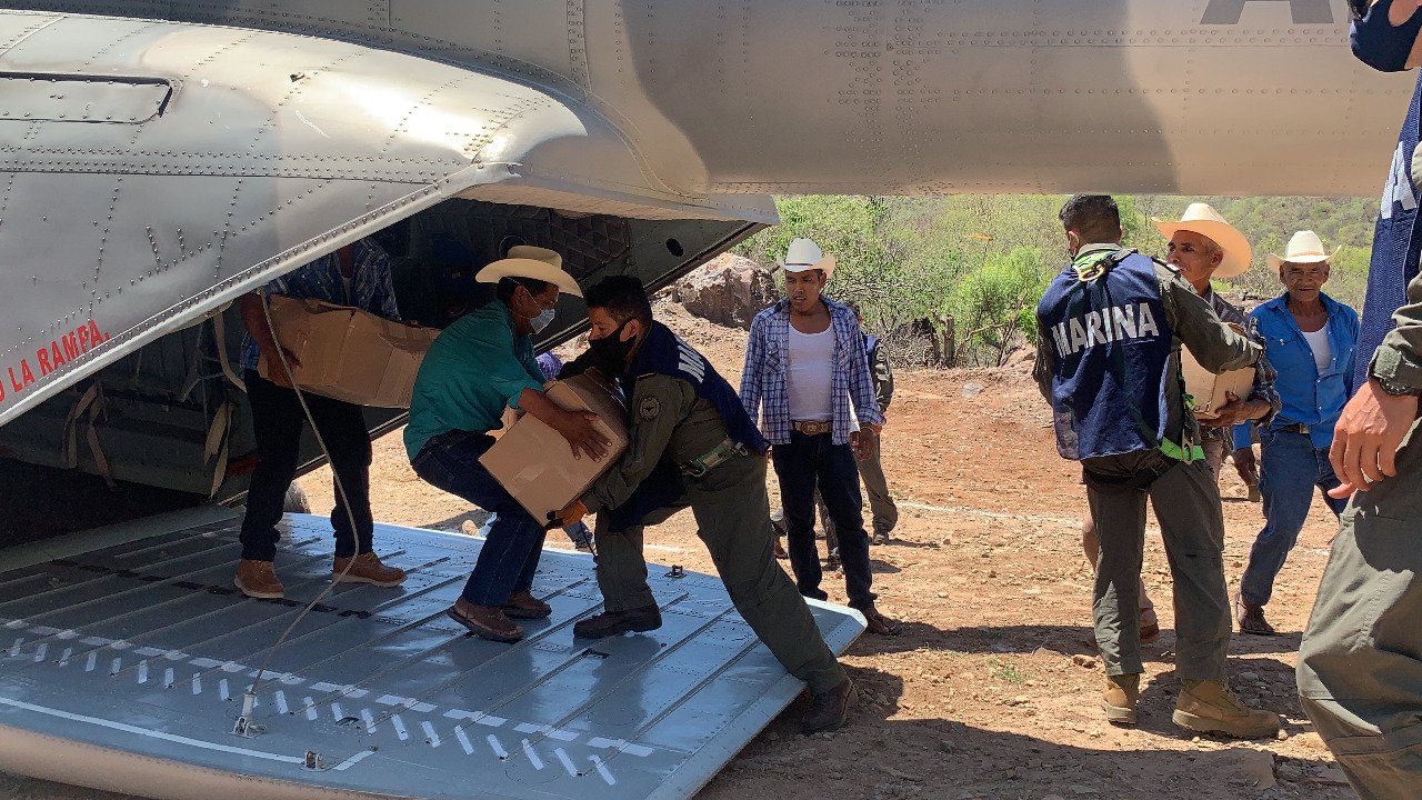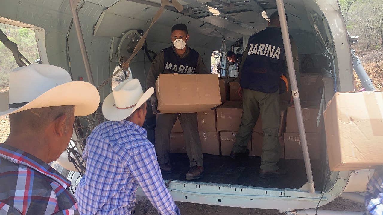 Para las labores de traslado, este Mando Naval desplegó dos helicópteros MI-17, así como personal de Almirantes, Capitanes, Oficiales, Clases y Marinería adscritos al Cuartel General de ese Mando Superior en Jefe y de la Base Aeronaval de Guaymas, quienes dirigieron y llevaron a cabo el traslado y entrega de 325 cajas con productos alimenticios y material sanitizador como cubrebocas, gel antibacterial y guantes. Cabe destacar, que además, el personal del IMSS proporcionó consultas médicas a 60 personas.