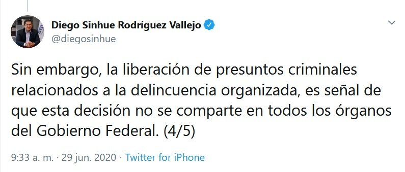 Morelia, Michoacán 29 de Junio de 2020, Redacción. El Gobernador de Guanajuato Diego Sinhue Rodríguez Vallejo, se pronuncio en contra de los señalamientos que el Presidente de la República Andrés Manuel López Obrador dio en la conferencia mañanera del día de hoy respecto a la liberación de integrantes del crimen organizado de Guanajuato.