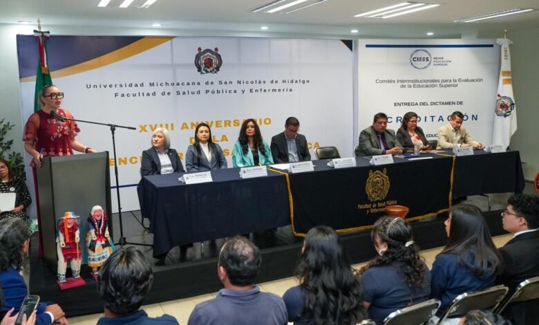 Morelia, Michoacán, a 05 de octubre de 2025.- La Licenciatura en Salud Pública de la Universidad Michoacana de San Nicolás de Hidalgo (UMSNH) obtuvo la primera acreditación en su historia por parte de los Comités Interinstitucionales para la Evaluación de la Educación Superior (CIEES), la cual fue recibida por la rectora Yarabí Ávila González, en el marco del XVIII Aniversario de la Facultad de Salud Pública y Enfermería.