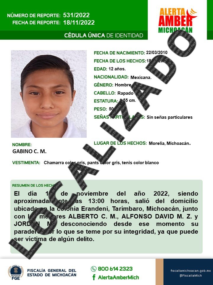 Los cuatro menores salieron ayer, del albergue del DIF, ubicado en colonia Erandeni, sin volver a saber nada de ellos. Los encargados del lugar de inmediato denunciaron los hechos a la Fiscalía de Michoacán que emitieron la ficha de búsqueda. Por fortuna fueron localizados sanos y salvos.