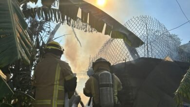 Después de varios minutos los bomberos lograron controlar y apagar el fuego, que consumió en su totalidad la casa habitación.