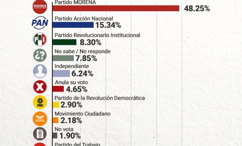 El estudio de Cripeso también midió la fidelidad de voto en la entidad, en donde Morena cuenta con una sólida base del 48.25%. Muy por detrás se encuentran el PAN con 15.34%, el PRI con 8.30% y la opción de candidatos Independientes con un 6.24%.