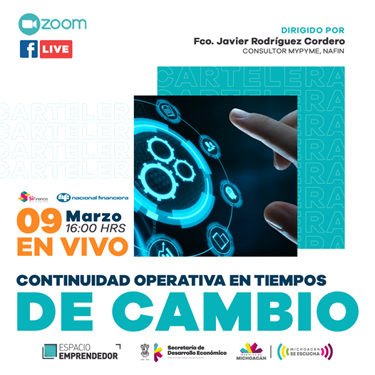 Por la tarde, Francisco Javier Rodríguez Cordero abordará el tema Continuidad Operativa en Tiempos de Cambio, a las 16 horas. El objetivo es que el participante identifique las acciones para reestablecer los procesos operativos en su empresa usando la matriz de reactivación económica y continuidad operativa.