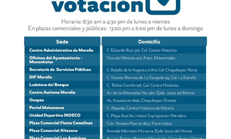 La votación estará abierta hasta el 30 de marzo, y podrá realizarse de forma digital en https://presupuestoparticipativo.morelia.gob.mx/votaciones/, o de forma presencial, en los módulos instalados en diferentes puntos de Morelia y tenencias del municipio.